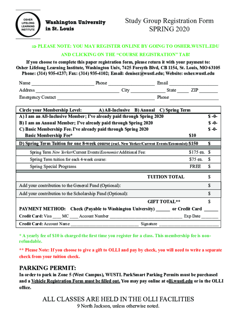 Study Group Registration Form Study Group Registration Form SPRING 2020 SPRING 2020 PLEASE NOTE: YOU MAY REGISTER ONLINE BY GOING TO OTHER.USTL.EDU PLEASE NOTE: YOU MAY REGISTER ONLINE BY GOING TO