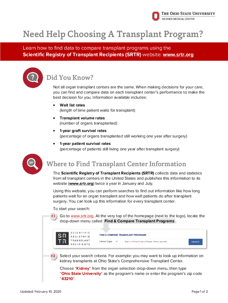 Need Help Choosing A Transplant Program? Learn how to find data to compare transplant programs using the Scientific Registry of Transplant Recipients (SRT) website: www.srtr.orgDid You Know? Not all