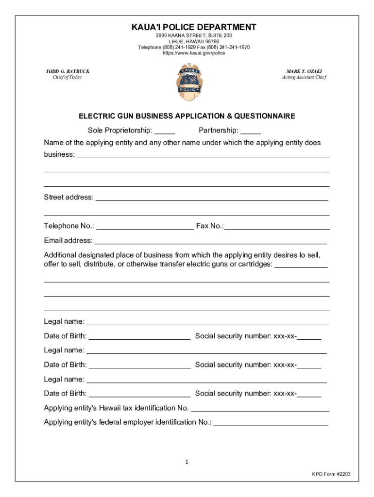 Obtain the necessary forms from the Kauai Police Department or their website.