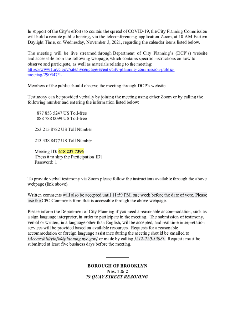 In support of the Cities efforts to contain the spread of COVID-19, the City Planning Commission will hold a remote public hearing, via the teleconferencing application Zoom, at 10 AM Eastern Daylight