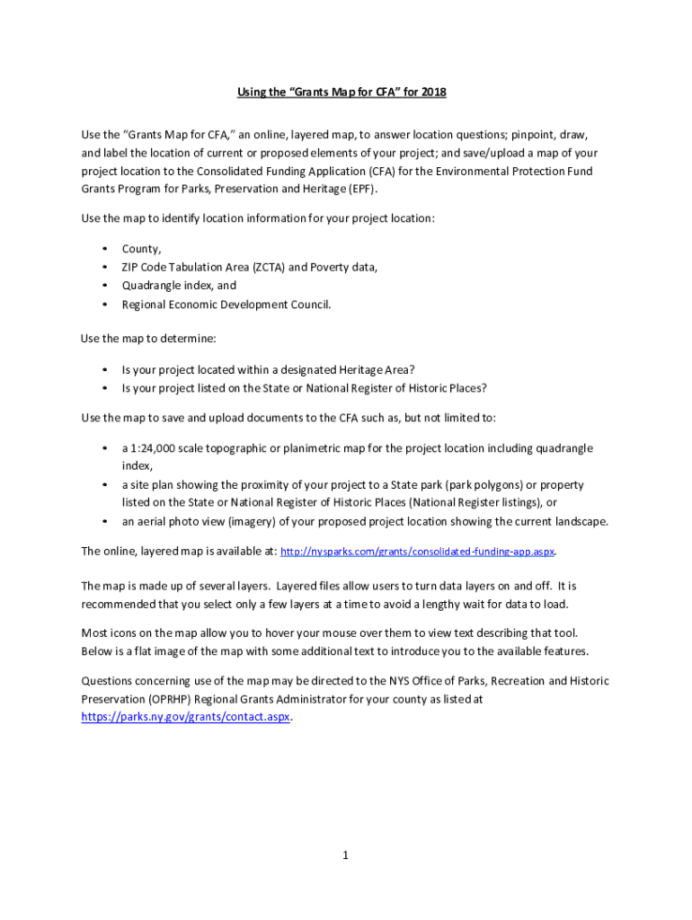 Using the Grants Map for CFA for 2018 Use the Grants Map for CFA, an online, layered map, to answer location questions; pinpoint, draw, and label the location of current or proposed elements of your