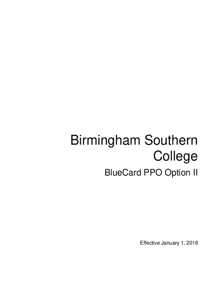 Birmingham Southern College Bluebird PPO Option Ineffective January 1, 2018Table of Contents OVERVIEW OF THE PLAN ..........................................................................................