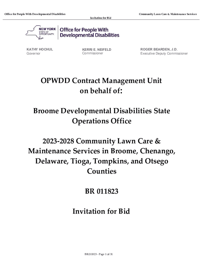 Office for People With Developmental DisabilitiesCommunity Lawn Care & Maintenance Services Invitation for Kathy HOC HUL GovernorKERRI E. NEUFELD CommissionerROGER BEARDED, J.D. Executive Deputy CommissionerOPWDD