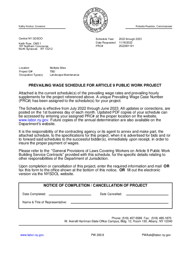 Kathy Bochum, Governor Roberta Rear don, Commissioner Central NY DDSOOSchedule Year Date Requested PRC#Keith Ryder, CMS 1 187 Northern Concourse North Syracuse NY 13212Location Project ID# Occupation