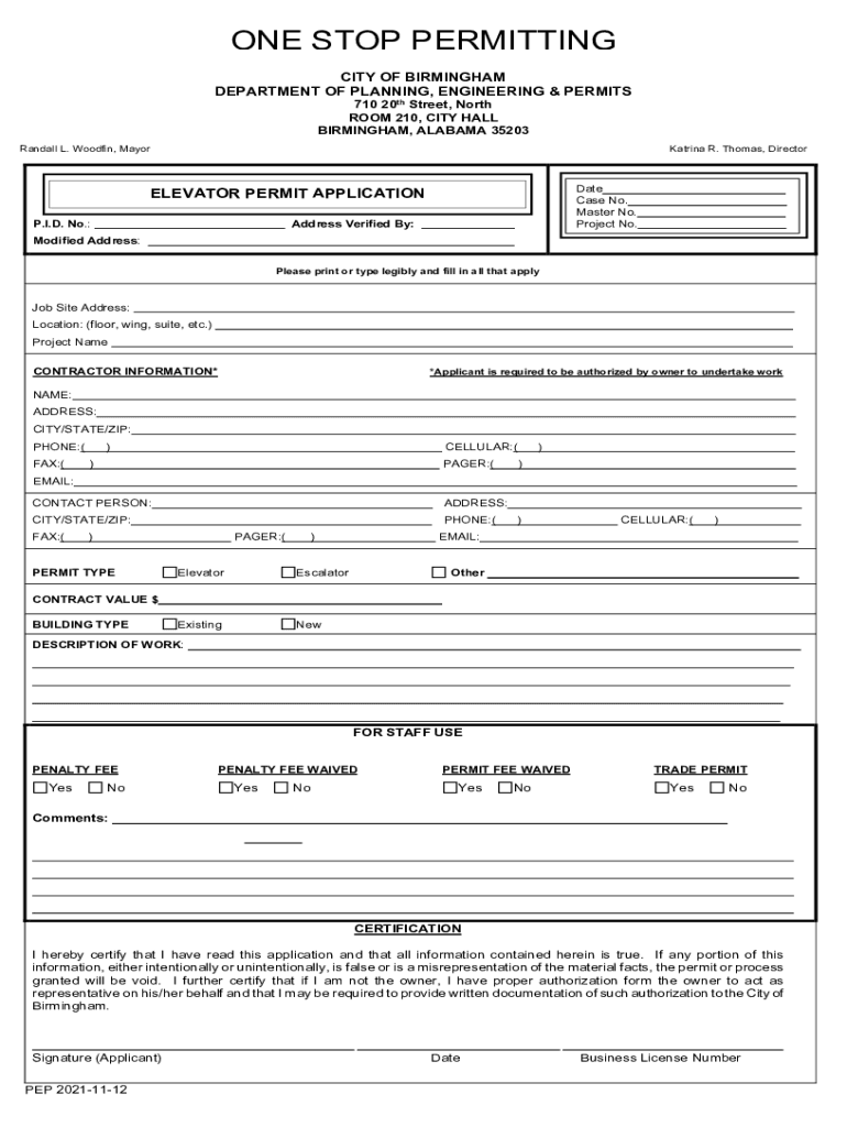 Get the free Elevator Permit - CITY OF BIRMINGHAM