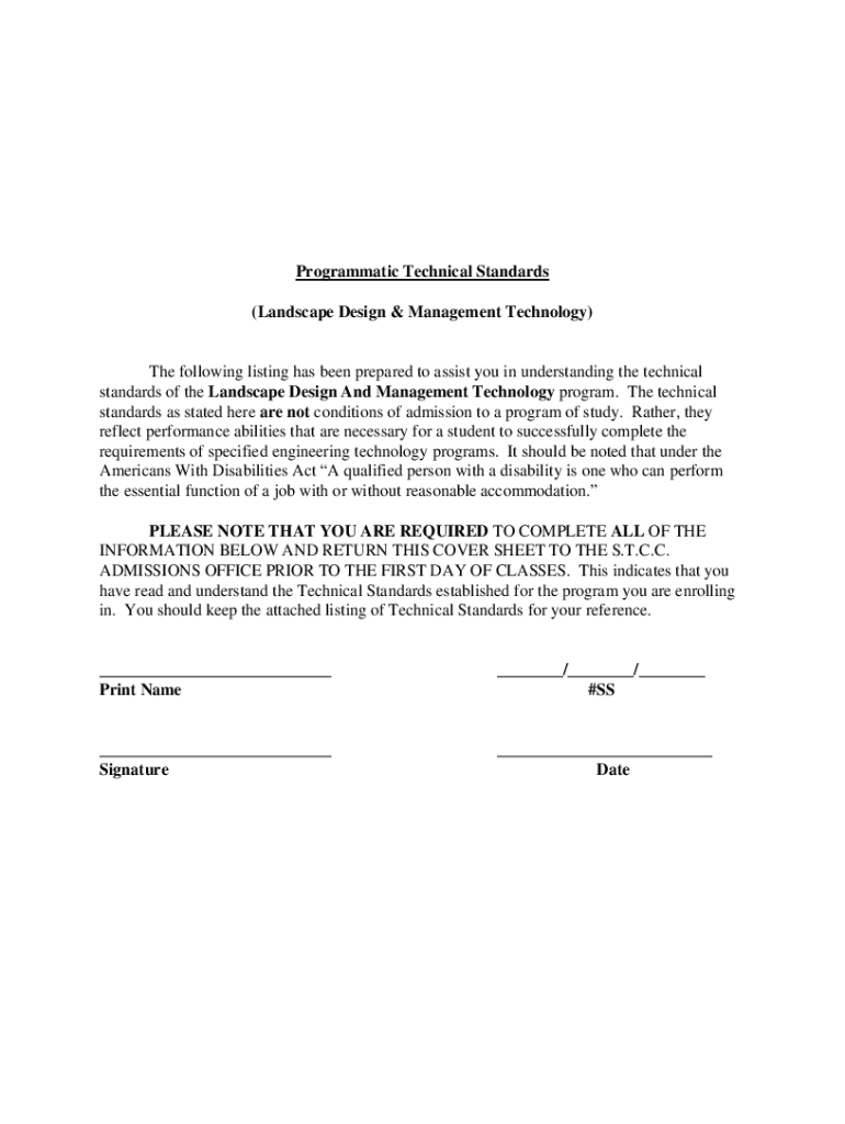 Programmatic Technical Standards (Landscape Design & Management Technology)The following listing has been prepared to assist you in understanding the technical standards of the Landscape Design And