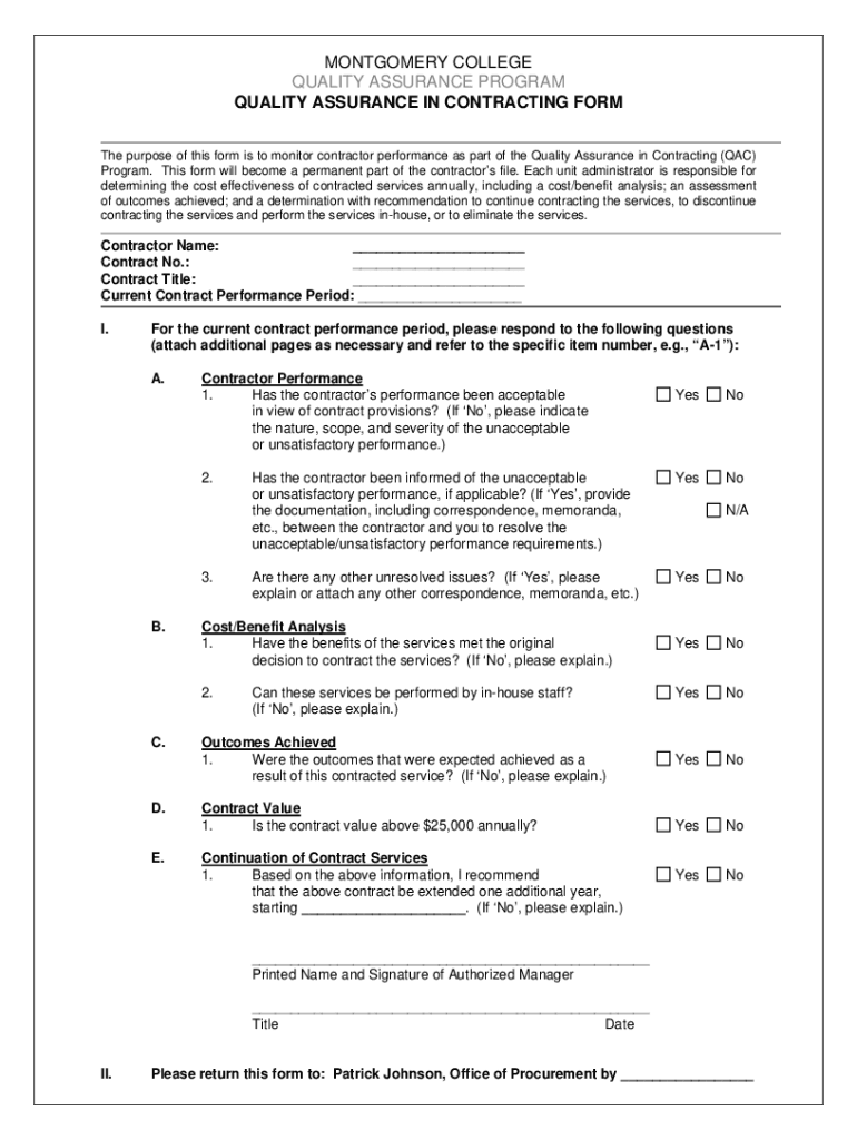 MONTGOMERY COLLEGE QUALITY ASSURANCE PROGRAM QUALITY ASSURANCE IN CONTRACTING From The purpose of this form is to monitor contractor performance as part of the Quality Assurance in Contracting (MAC)