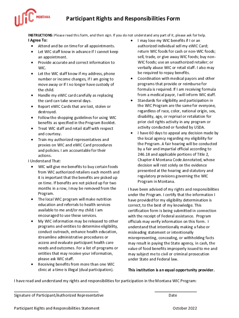 Get the free Participants Rights and Responsibilities Form - dphhs - dphhs mt