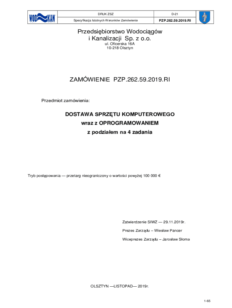 DRUG ZSZD21Specyfikacja Istotnych Warner ZamwieniaPZP.262.59.2019.RIPrzedsibiorstwo Wodonga