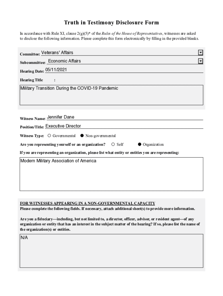 Truth in Testimony Disclosure Form In accordance with Rule XI, clause 2(g)(5)* of the Rules of the House of Representatives, witnesses are asked i i i i i i i i i Committee: Veterans\' Affairs Subcommittee: