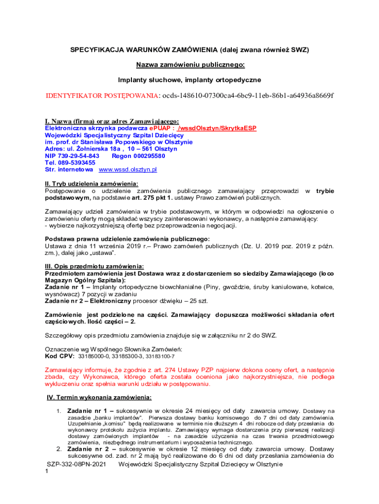Get the free SIWZ-11KO.pdf - Szpital Dziecicy w Olsztynie