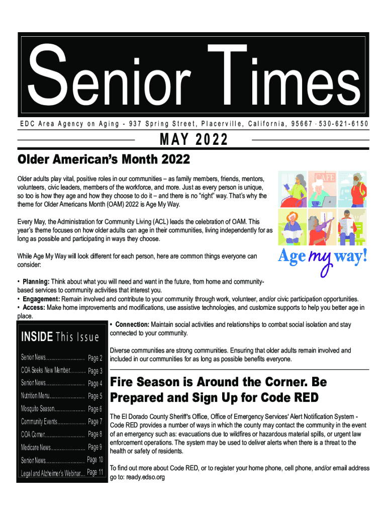 Senior Times EDC Area Agency on Aging 937 Spring Street, Porterville, California, 95667M A 2 0 2 25306216150Older Americans Month 2022Older adults play vital, positive roles in our communities as