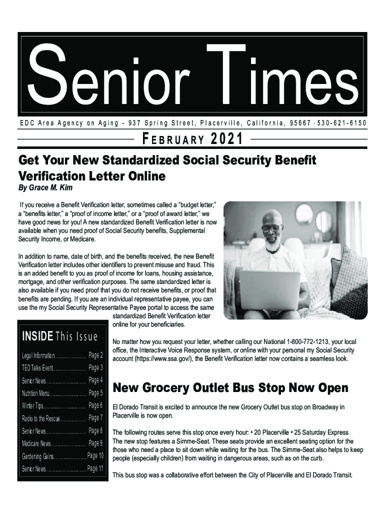 Senior Times EDC Area Agency on Aging 937 Spring Street, Porterville, California, 95667February 20215306216150Get Your New Standardized Social Security Benefit Verification Letter Online By Grace