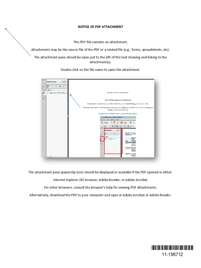 NOTICE OF PDF Attachments PDF file contains an attachment. Attachments may be the source file of the PDF or a related file (e.g., forms, spreadsheets, etc). The attachment pane should be open just