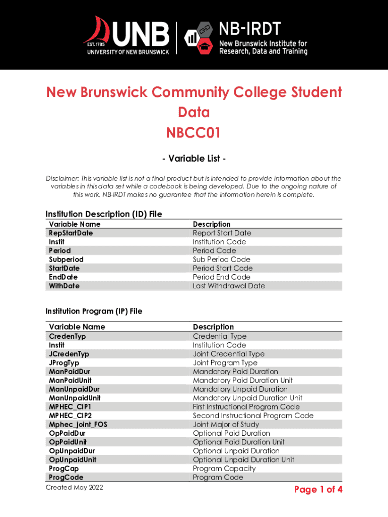 Get the free New Brunswick Community College Student Data NBCC01