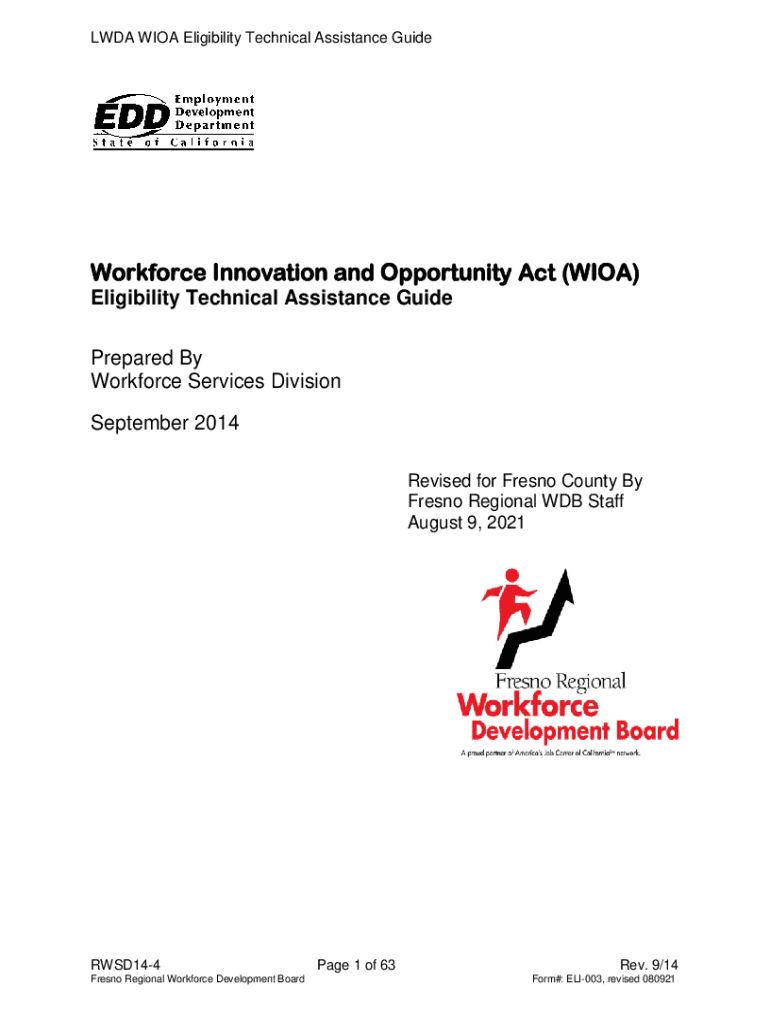 Get the free Technical Assistance Guide (T.A.G.) Workforce Innovation and ...