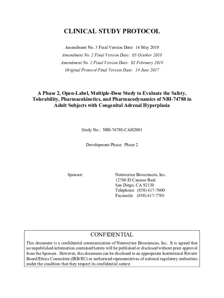 CLINICAL STUDY PROTOCOL Amendment No. 3 Final Version Date: 14 May 2019 Amendment No. 2 Final Version Date: 05 October 2018 Amendment No. 1 Final Version Date: 02 February 2018 Original Protocol Final