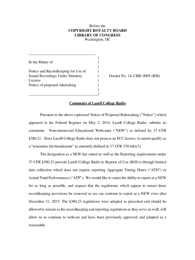 Get the free Notice of Use of Sound Recordings - Sections 112 and 114