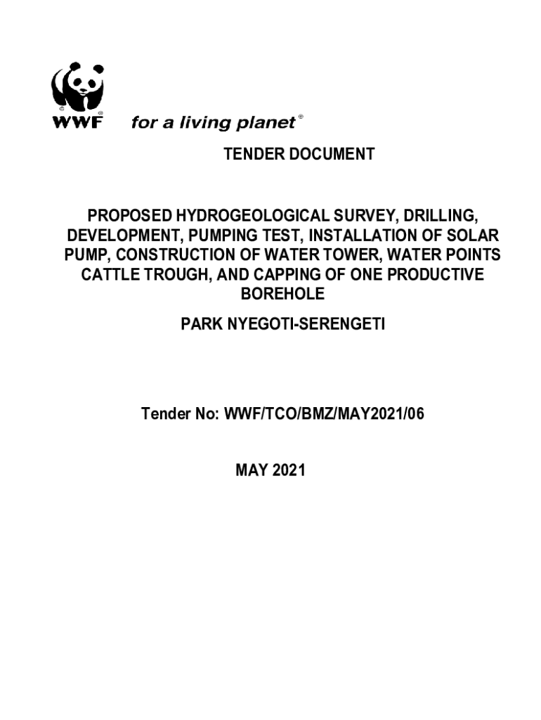 TENDER DOCUMENT PROPOSED HYDROLOGICAL SURVEY, DRILLING, DEVELOPMENT, PUMPING TEST, INSTALLATION OF SOLAR PUMP, CONSTRUCTION OF WATER TOWER, WATER POINTS CATTLE TROUGH, AND CAPPING OF ONE PRODUCTIVE