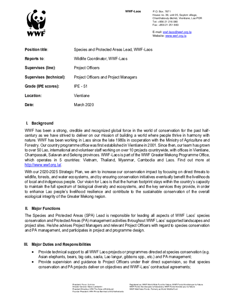 Get the free Species and Protected Areas Lead, WWF-Laos - d2ouvy59p0dg6k cloudfront