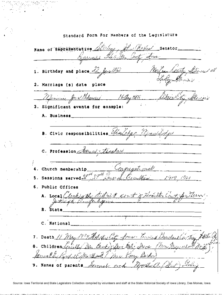 . Standard Form POR Members of the Le91slatureName of\'R:up’t;BS;e. Latin.__, .,44f......!:::.id\'M2. Marriage (s) dateSenator ___ted; :;_17rl/ IIplace3. Significant events for example: A. Business