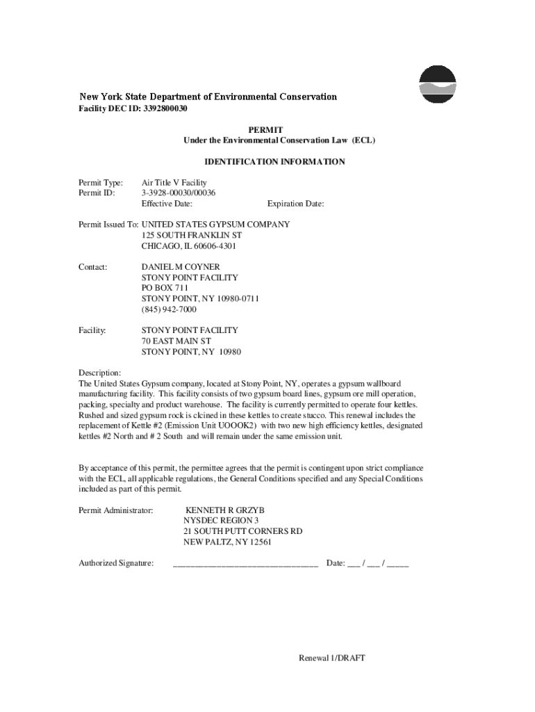 Facility DEC ID: 3392800030 PERMIT Under the Environmental Conservation Law (ECL) IDENTIFICATION INFORMATION Permit Type: Permit ID:Air Title V Facility 3392800030/00036 Effective Date:Expiration