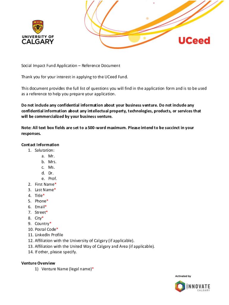 Social Impact Fund Application Reference Document Thank you for your interest in applying to the Used Fund. This document provides the full list of questions you will find in the application form