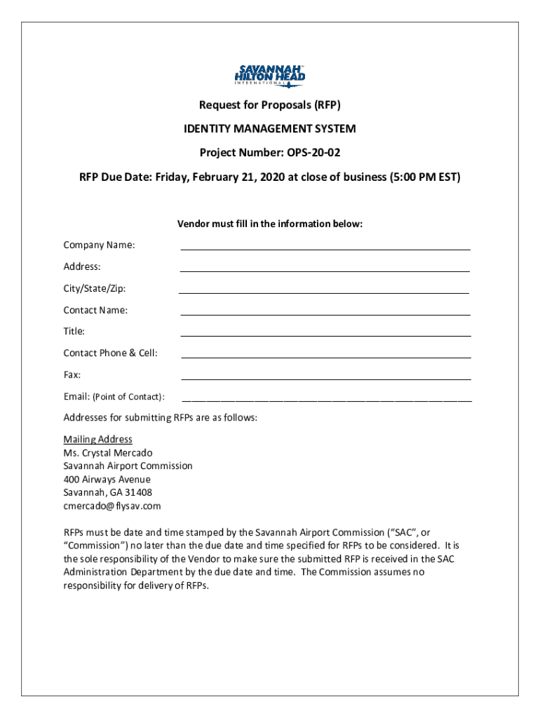 Get the free Request for Proposals (RFP) IDENTITY ... - Savannah, GA