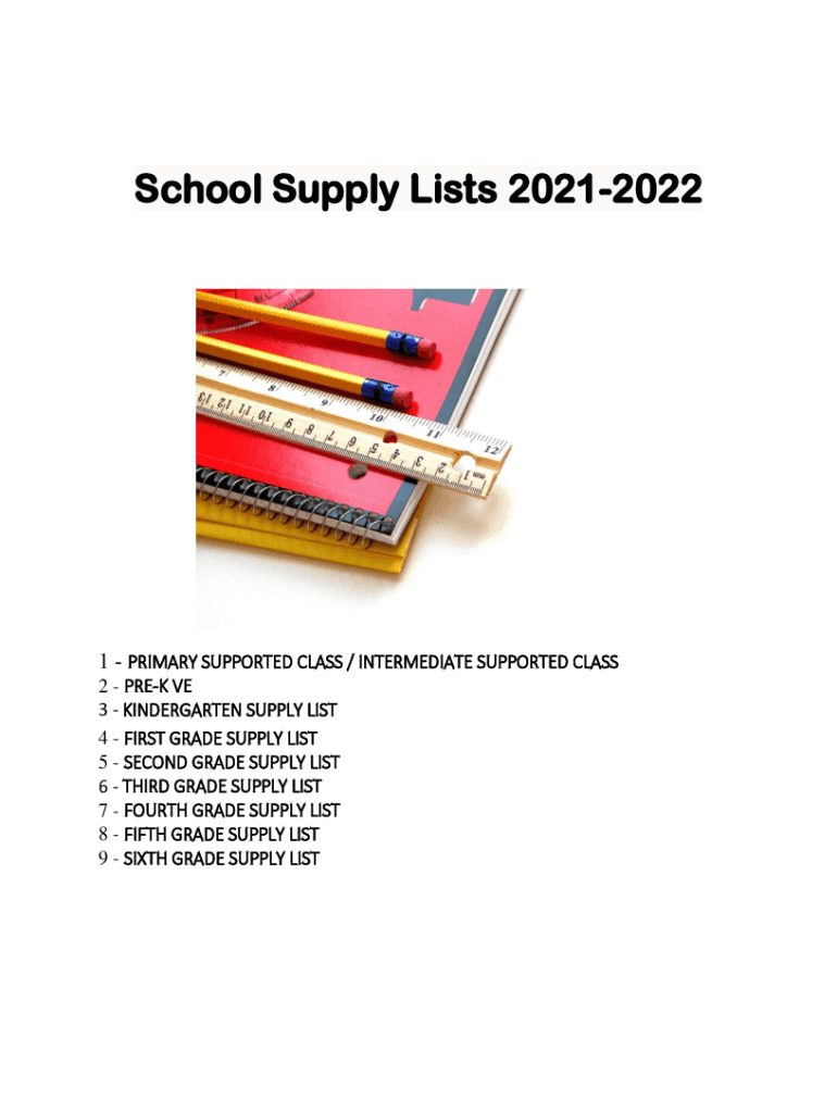 School Supply Lists 202120221 PRIMARY SUPPORTED CLASS / INTERMEDIATE SUPPORTED CLASS 2 PREY VE 3 KINDERGARTEN SUPPLY LIST 4 FIRST GRADE SUPPLY LIST 5 SECOND GRADE SUPPLY LIST 6 THIRD GRADE SUPPLY