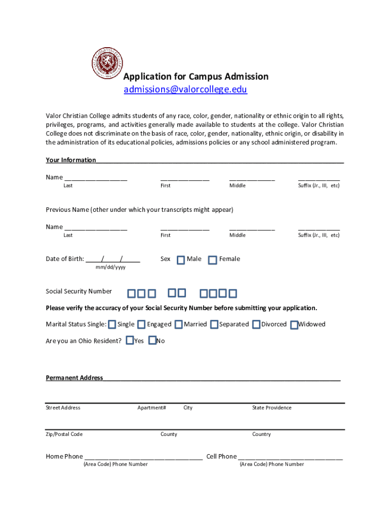 Get the free Application for Campus Admission - Valor Christian College