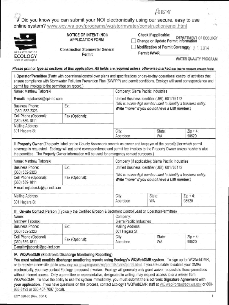 Get the free notice of intent (n01) - Washington State Department of Ecology