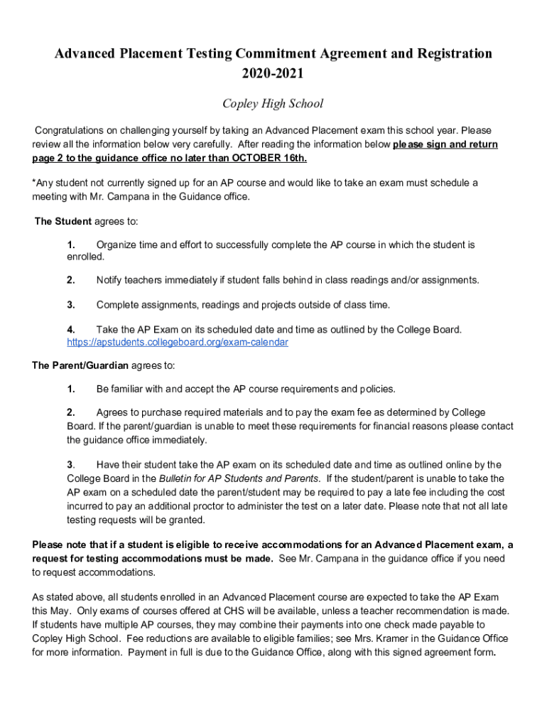 Get, Create, Make and Sign advanced placement testing commitment