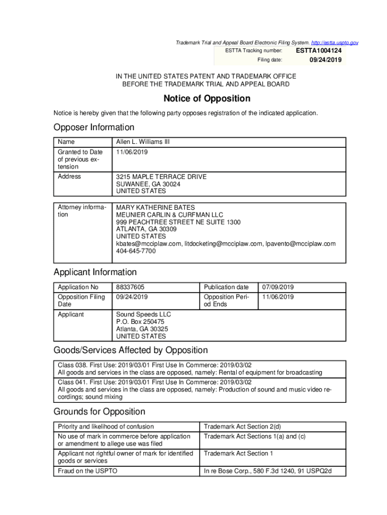 Get the free ttabvue-91251150-OPP-1.pdf - USPTO