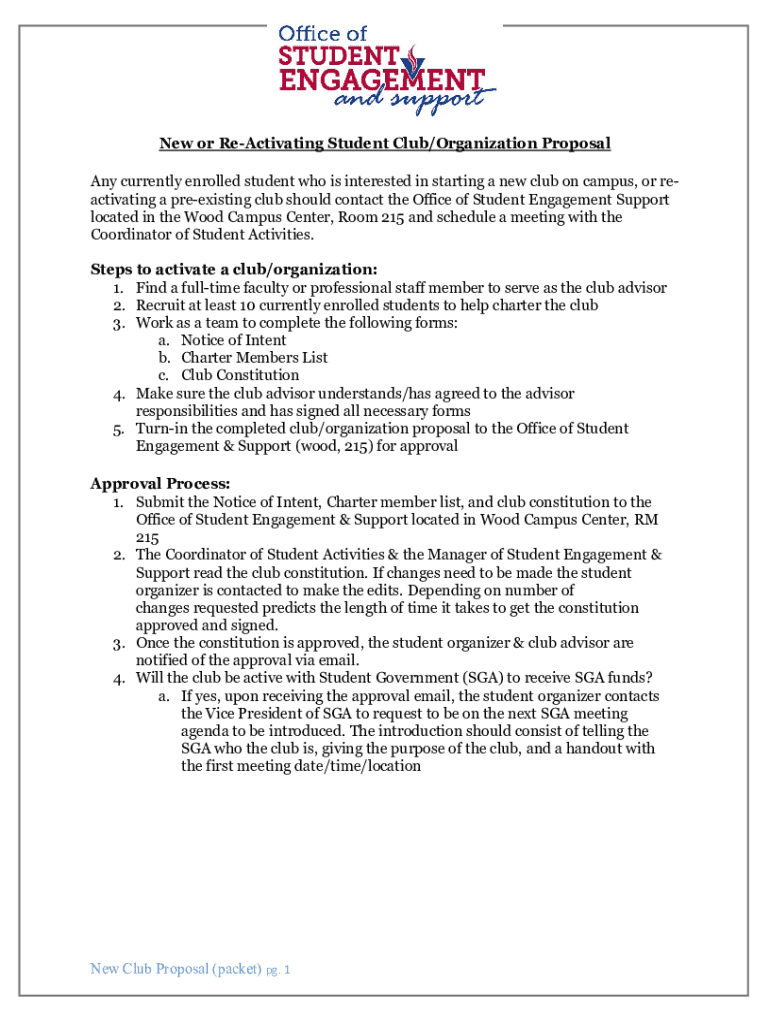 Get the free New or Re-Activating Student Club/Organization Proposal