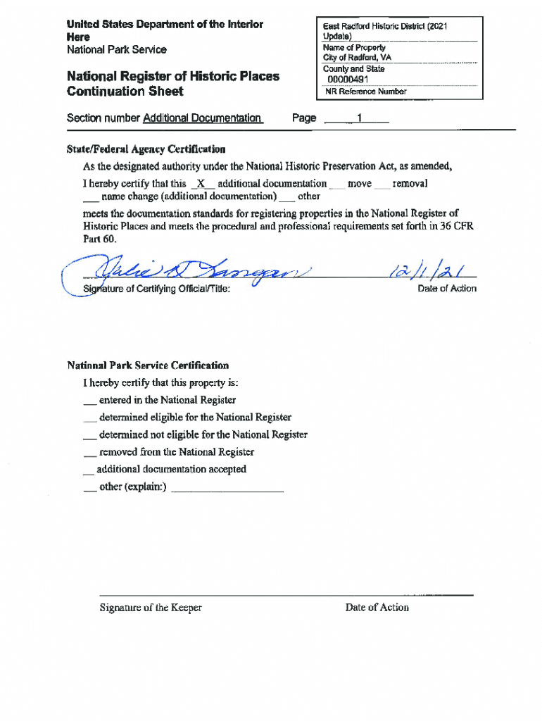 Get the free National Register of Historic Places listings in Radford, Virginia