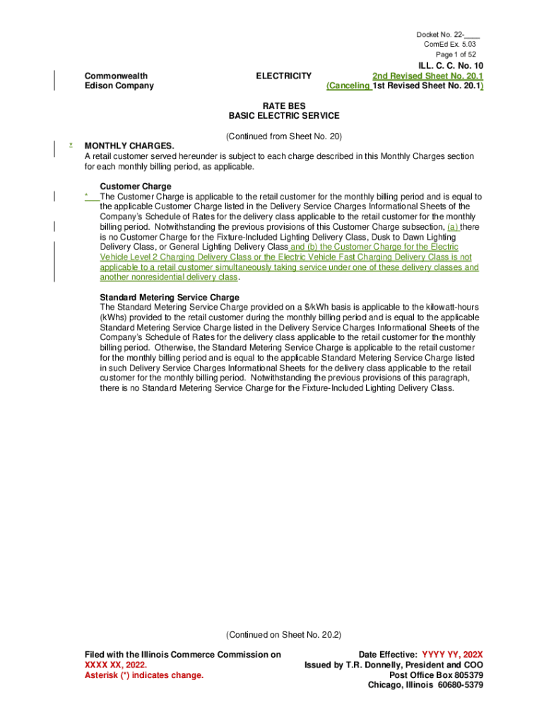 Docket No. 22___ Come Ex. 5.03-Page 1 of 52Commonwealth Edison CompanyELECTRICITYILL. C. C. No. 10 2nd Revised Sheet No. 20.1 (Canceling 1st Revised Sheet No. 20.1)RATE BES BASIC ELECTRIC SERVICE*(Continued