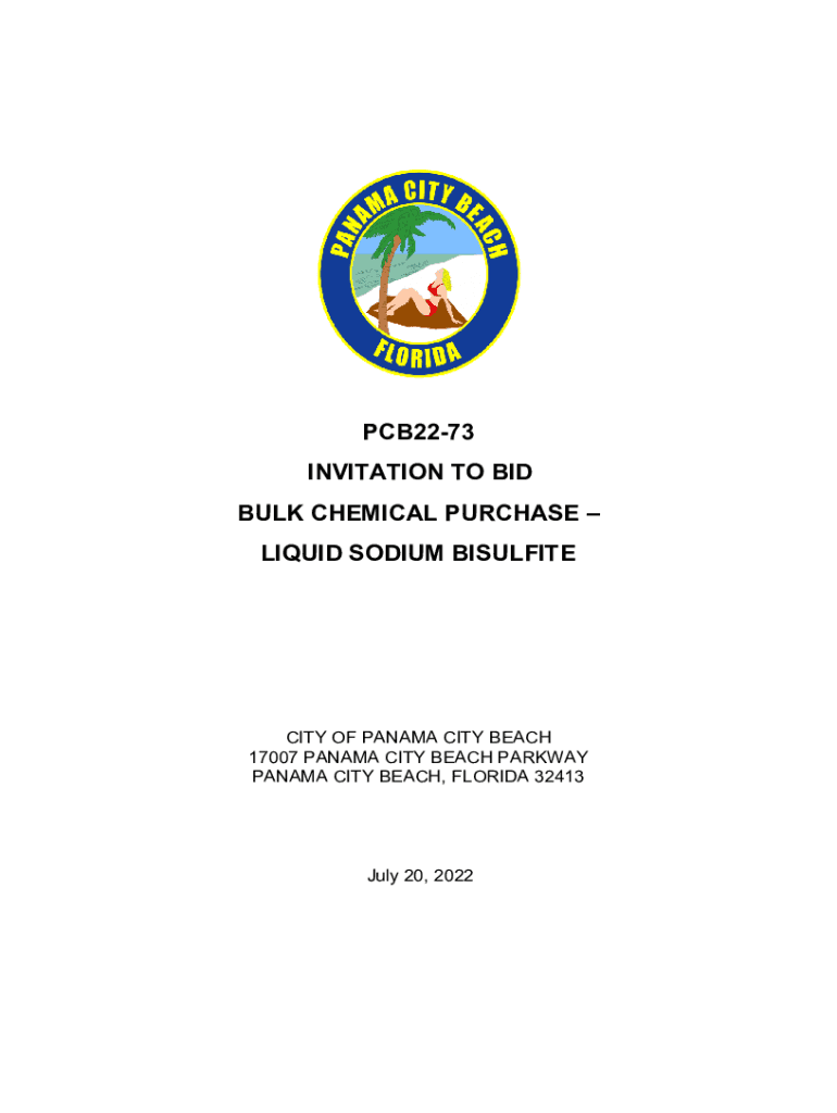 PCB2273 INVITATION TO BID BULK CHEMICAL PURCHASE LIQUID SODIUM BISULFITECITY OF PANAMA CITY BEACH 17007 PANAMA CITY BEACH PARKWAY PANAMA CITY BEACH, FLORIDA 32413July 20, 2022TABLE OF CONTENTS BIDDING