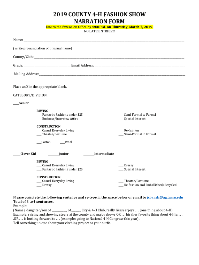 Get the free Writing a 4-H Fashion Show Narration - Nebraska Extension