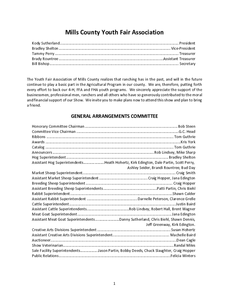 Mills County Youth Fair Association Body Sutherland ................................................................................................................... President Bradley Shelton ............................................................................................................