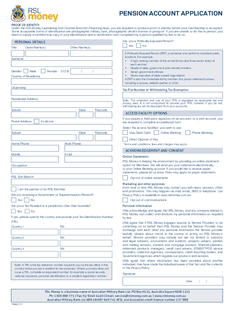 PENSION ACCOUNT APPLICATION PROOF OF IDENTITY Under the Antimony Laundering and CounterTerrorism Financing laws, you are required to produce proof of identity before your membership is accepted. Some