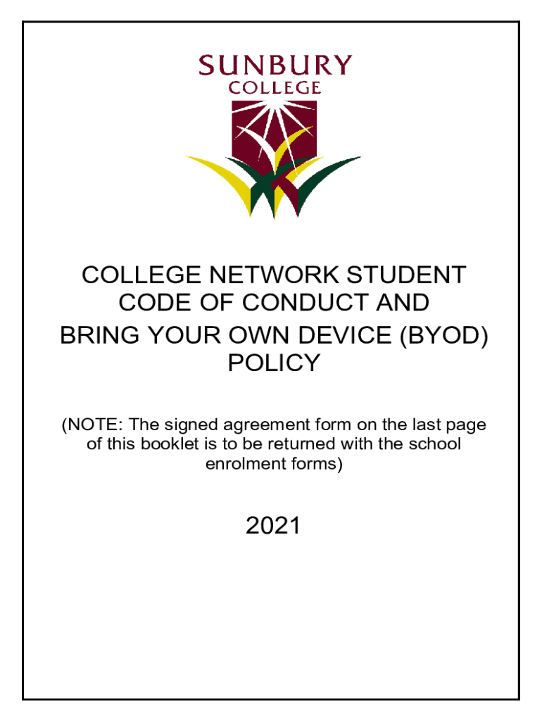 COLLEGE NETWORK STUDENT CODE OF CONDUCT AND BRING YOUR OWN DEVICE (BYOD) POLICY (NOTE: The signed agreement form on the last page of this booklet is to be returned with the school enrollment forms)2021SECTION