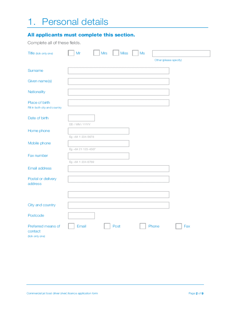 Commercial jet boat driver (river) license application form Last updated: July 2019About this form Use this form if you are applying for: a new license (new drivers)a replacement licencerenewal of