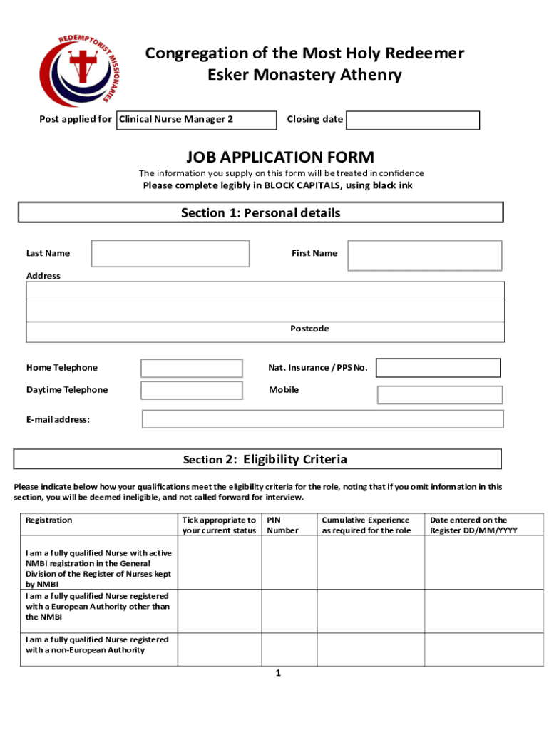 Nursing service jobs can be filled out online or through paper forms provided by the regulatory authorities.
