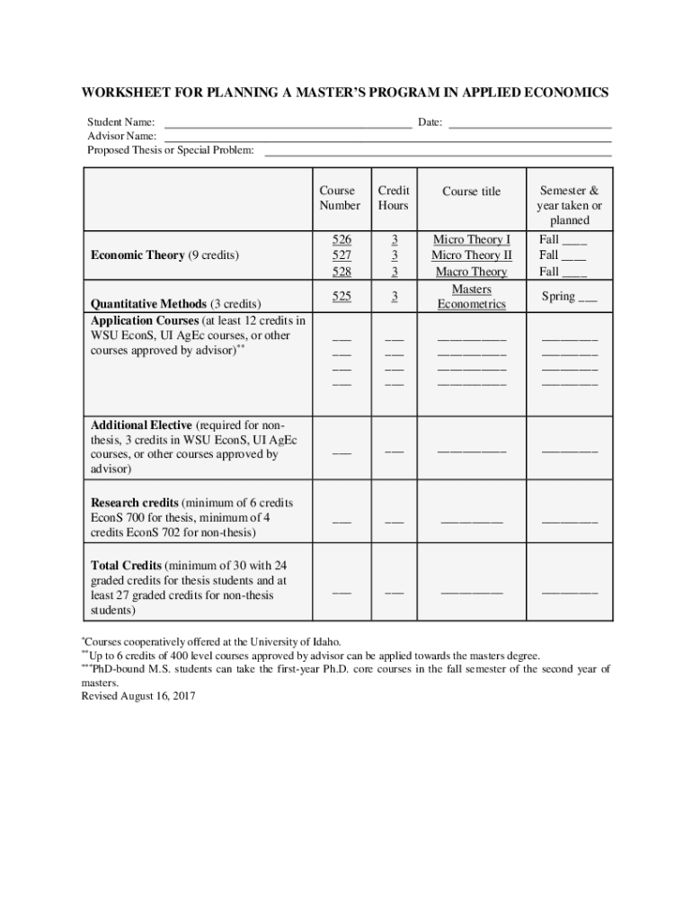 Get the free WORKSHEET FOR PLANNING A MASTER'S PROGRAM IN ... - ses wsu