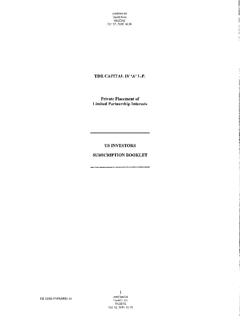 Confidential David Felix PAPERS Oct 12, 2016 16:36TDR CAPITAL IV \'A\' L.P. Private Placement of Limited Partnership Interests US INVESTORS SUBSCRIPTION BOOKLET KE 1358317:97644761.14confidential