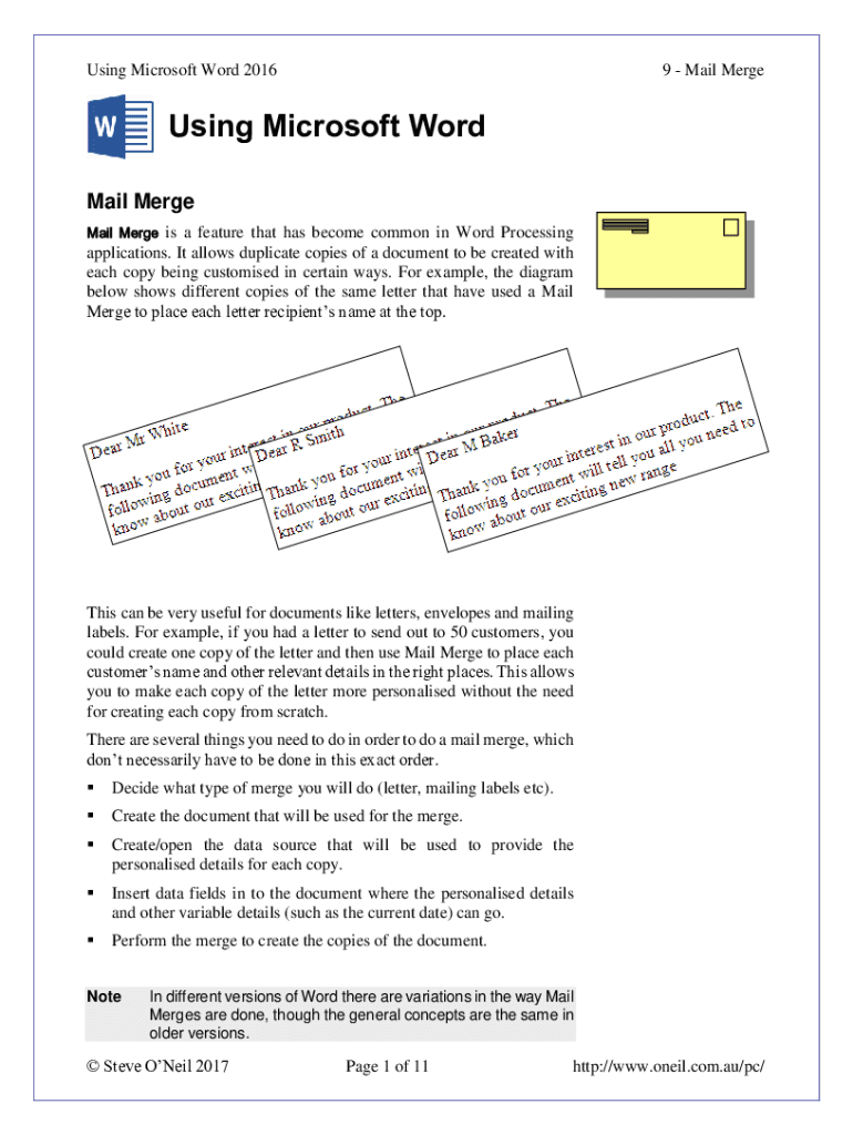 Using Microsoft Word 20169 Mail Merging Microsoft Word
