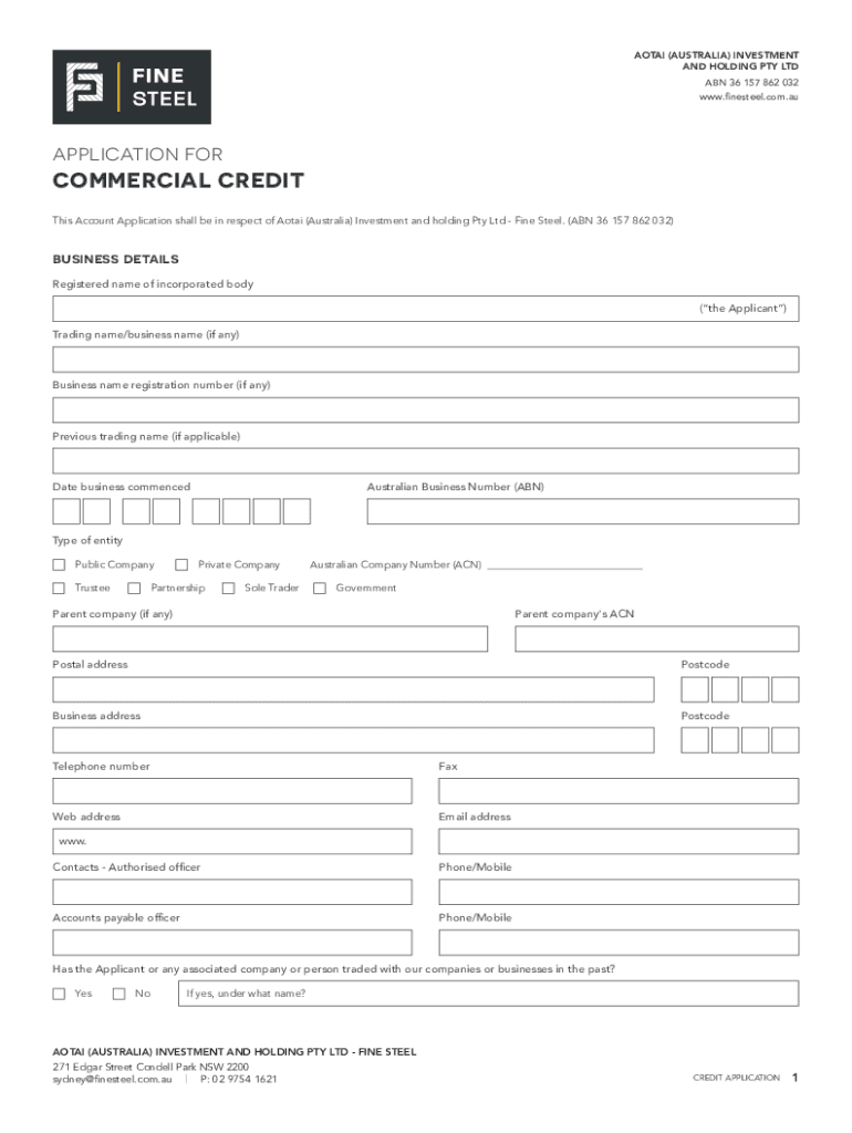 ALTAI (AUSTRALIA) INVESTMENT AND HOLDING PTY LTD ABN 36 157 862 032www.finesteel.com.application NONCOMMERCIAL CREDIT This Account Application shall be in respect of Altai (Australia) Investment and