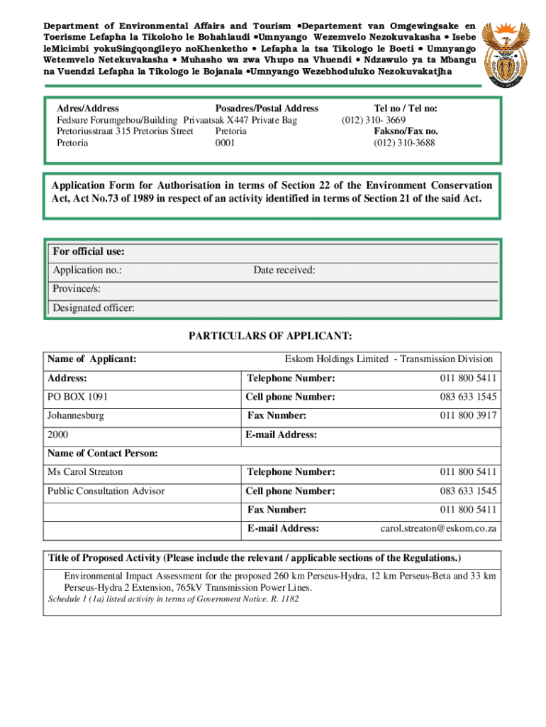 Get the free Application Form for Authorisation in terms of Section 22 of the ...