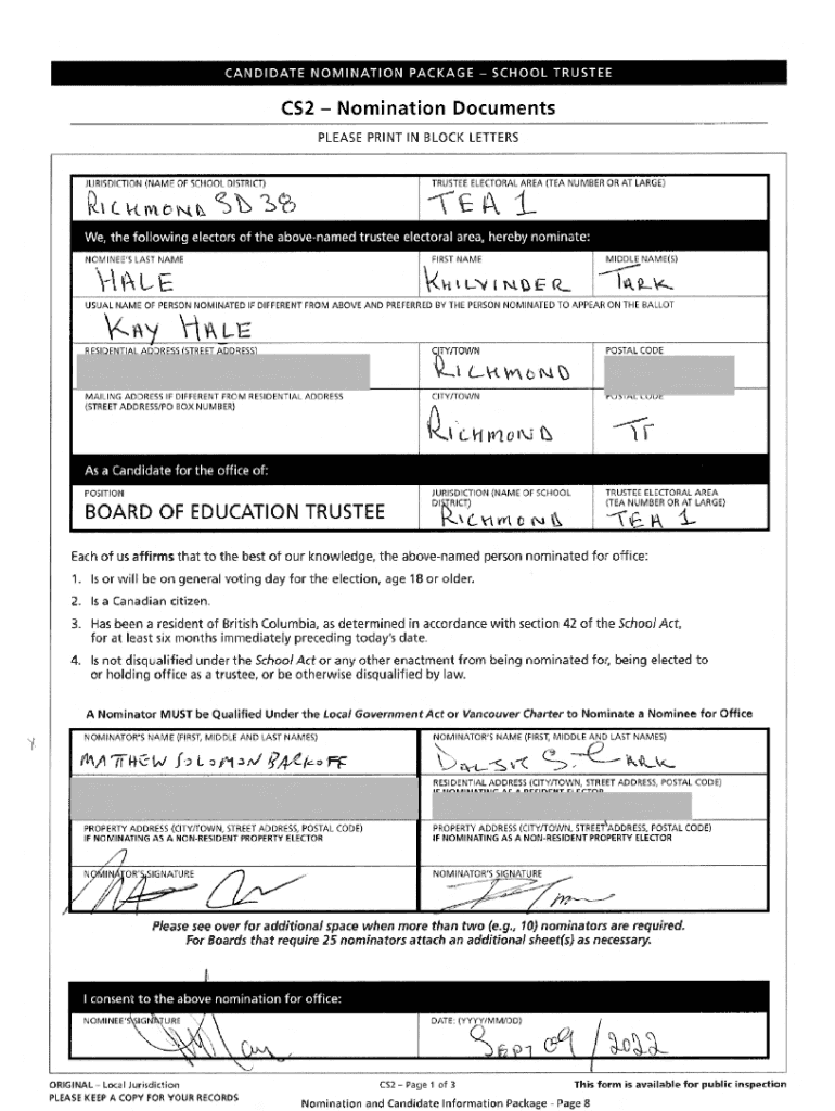 CANDIDATE NOT I NAT ION PACKAGE SCHOOL TRUSTEECS2 Nomination Documents