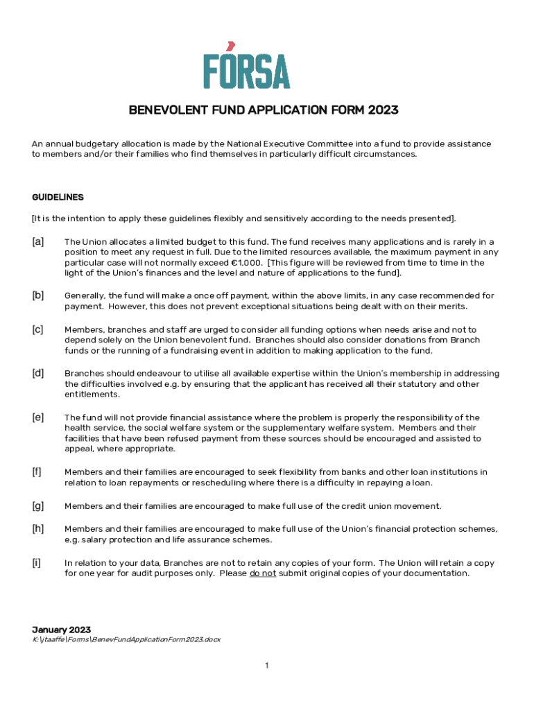 Get the free BENEVOLENT FUND APPLICATION FORM 2023Forsa
